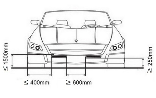 Światła muszą być obowiązkowo montowane w komplecie symetrycznie na wysokości min. 250 mm, max. 1500 mm, nie dalej niż 400 mm od bocznej krawędzi obrysu auta, a odległość między światłami musi wynosić min. 600 mm.
