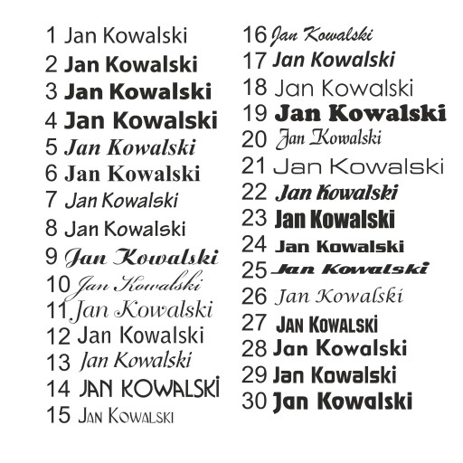 WZORY TABLICZEK I RODZAJÓW CZCIONKI DO WYBORU
