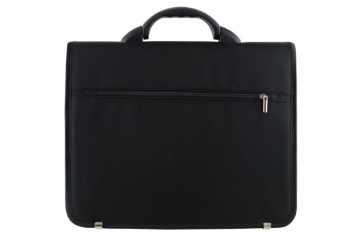 Wewnątrz teczki znajdują się trzy przegrody, kieszeń na zamek, miejsce na długopisy, wizytówki i telefon komórkowy. Bez problemu zmieści laptop, segregatory itp. Na zewnętrznej tylnej ściance posiada kieszeń na zamek. W komplecie długi pasek na ramię z naramiennikiem (140cm długości, 3cm szerokości) i kluczyk do zapięcia. Na dole teczki metalowe stopki zabezpieczające przed uszkodzeniami i przetarciami materiału. Całość uzupełnia wytrzymała i funkcjonalna rączka.