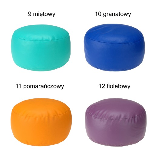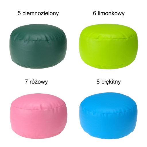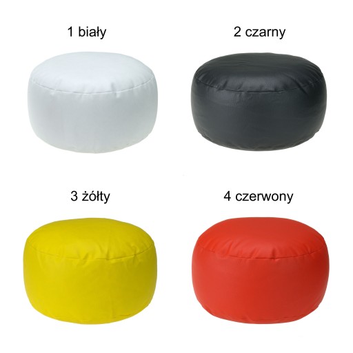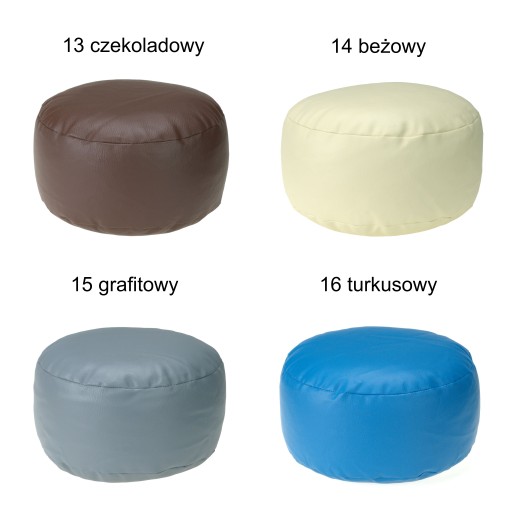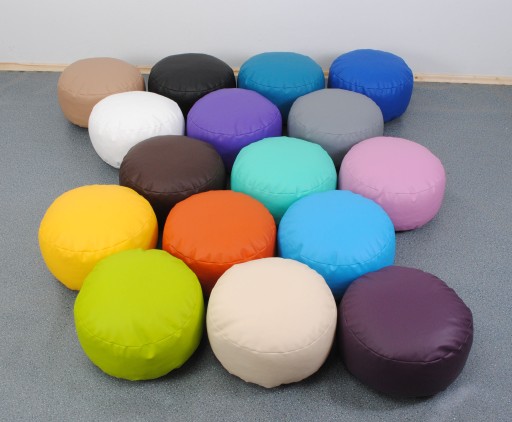 Przedmiotem aukcji jest okrągła pufa roller, w 20 wersjach kolorystycznych do wyboru. Wymiary pufy to 35cm średnicy i 18cm wysokości. Wersję kolorystyczną można wybrać dowolnie przy zakupie, wybierając wersje kolorystyczne z wzornika lub palety barw znajdującej się na aukcji. Instrukcję dot. dobierania kolorów opisujemy w tekście poniżej. Pufa jest meblem bezszkieletowym, dlatego jej wymiary mogą się zmieniać w zależności od wagi osoby użytkującej, ułożenia pufy lub doboru wypełnienia. Pufa jest standardowo wypełniona mieszanką sprężystych materiałów do produkcji mebli, które zapewniają trwałość i komfort użytkowania. Roller został wykonany z ekoskóry dollaro, która posiada atest PZH.