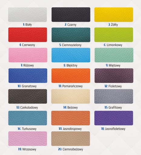 - Ekoskóra została solidnie wykonana przez producenta. Jej kolory są intensywne i żywe. Używamy jednakowo mocnego materiału pierwszego gatunku, dzięki czemu możemy zagwarantować wykonanie produktów wysokiej jakości. Nasze skóry posiadają atest PZH.