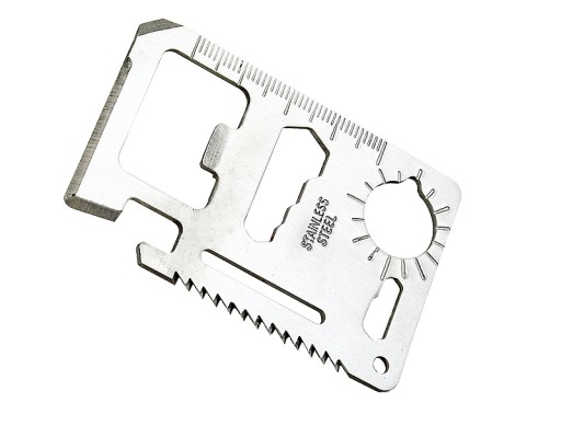 Niewielkich rozmiarów karta survivalowa (multitool) nadająca się do noszenia