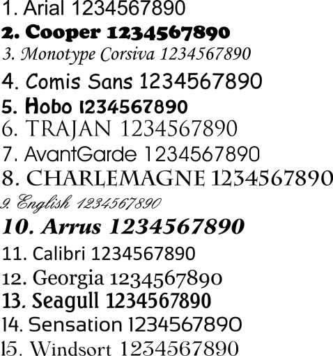 - Możesz wybrać rodzaj czcionki z tabeli po prawej (wystarczy nam podać numer)