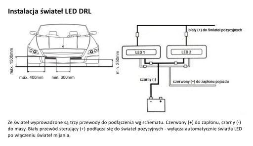 Wbudowany KONTROLER wraz z instrukcją montażu zapewnia automatyczne włączanie świateł po włączeniu zapłonu i wyłączanie po włączeniu świateł mijania.