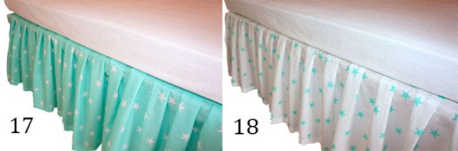 Falbana pięknie zdobi łóżeczko i dodatkowo maskuje szuflady oraz przedmioty trzymane pod łóżeczkiem.