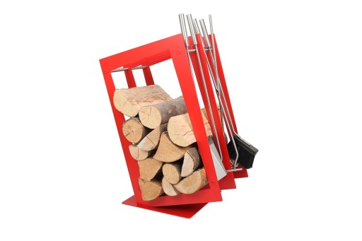 ZESTAW KOMINKOWY prostokąt czerwony AKCESORIA kosz na drewno przybornik