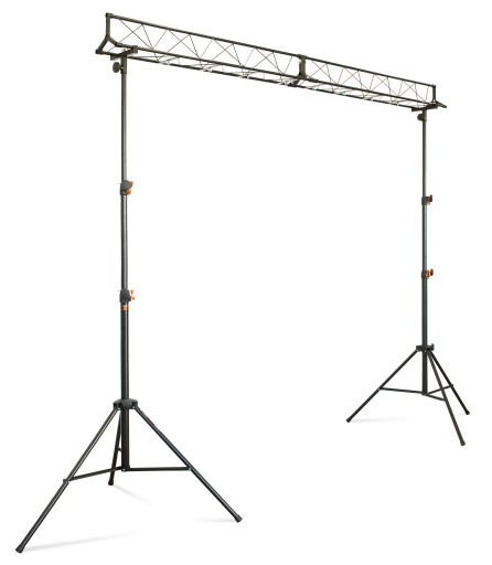 Profesjonalna konstrukcja oświetleniowa składająca się z dwóch trójramiennych trawersów o łącznej długości 3000mm montowanych na podporach i dwóch statywach oświetleniowych LS-4. Zestaw umożliwia zamontowanie do 8 punktów świetlnych.