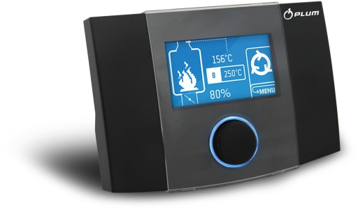 - automatyczna regulacja procesu spalania poprzez kontrolę dopływu powietrza do paleniska kominka z uwzględnieniem odczytów temperatury spalin. Dzięki możliwości kontroli dopływu powietrza do paleniska oszczędzamy paliwo oraz zmniejszamy emisję szkodliwych substancji do atmosfery. Na podstawie informacji o temperaturze spalin regulator wydłuża czas palenia pomiędzy kolejnymi załadowaniami paliwa do paleniska. Utrzymuje temperaturę spalin na optymalnym poziomie. Zamyka przepustnicę po zakończeniu palenia, co zapobiega wychładzaniu kominka. Umożliwia to zaimplementowany do regulatora zaawansowany algorytm, który został zaprojektowany przez zespół inżynierów w Biurze Projektowym firmy PLUM.