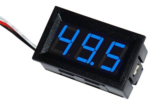 Woltomierz panelowy, kolor niebieski, duży i czytelny do zamontowania w obudowie. Zakres pomiarowy 0-100V.