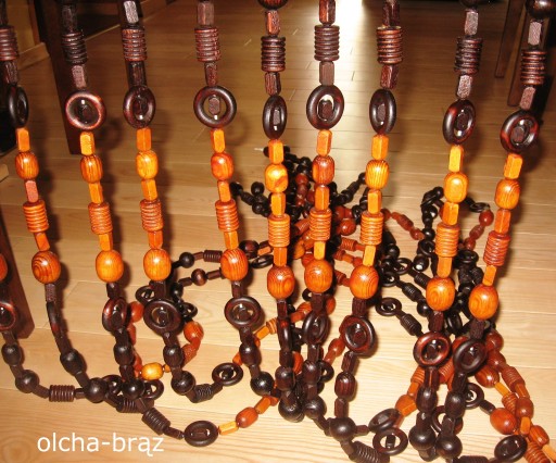 Zasłonka jest wykonana z korali drewnianych pokrytych lakierem. U góry jest wykończona drewnianą listwą, którą można przymocować do futryny czy ściany za pomocą kołków z wkrętami. Można ją też zawiesić nad futryną na hakach kątowych.Ma bardzo atrakcyjny wygląd i pasuje do każdego wnętrza. Jest wykonana solidnie i estetycznie.