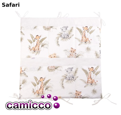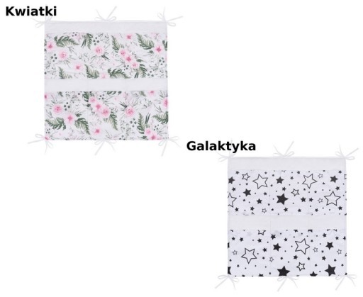 Przybornik pomieści niezbędne akcesoria w codziennej pielęgnacji Maluszka, do tego wspaniale ozdobi łóżeczko, posiada 6 kieszonek. Wiążemy go za pomocą sznureczków do szczebelków łóżeczka na wybranym przez siebie miejscu i wysokości