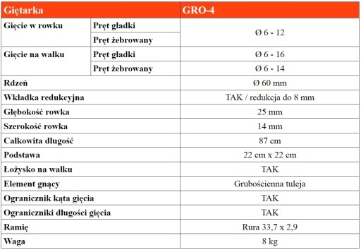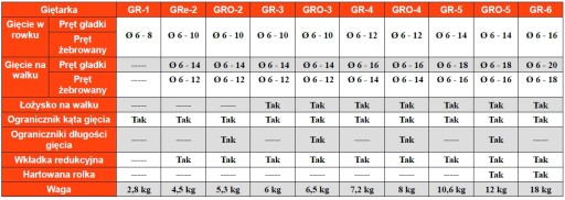 - głębokość rowka 25 mm, możliwość gięcia kilku prętów jednocześnie
