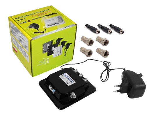 - Rozdzielacz sygnału DVB-T / DVB-T2 wraz z zasilaczem regulowanym na 3 TV od polskiego producenta do wyboru kolor biały lub czarny
