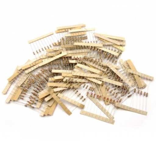 Zestaw 33 najpopularniejszych rezystorów węglowych o mocy 0.25W i 5% tolerancji.