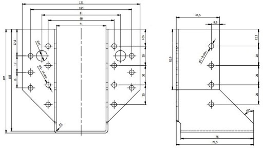 - ilość otworów - 22 otwory ø5mm, 2 otwory ø11mm