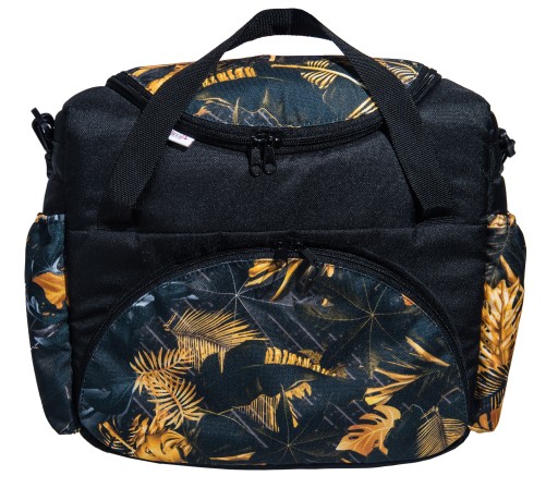 Boczne kieszonki zapewniają bezpieczny transport butelek, zapobiegające przed możliwym rozlaniem się. Z przodu torby znajduje się duża kieszeń zapinana na zamek
