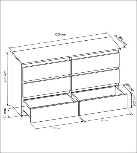 KOMODA 6 SZUFLAD 120CM BIAŁA