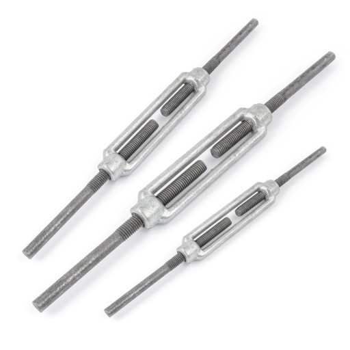 Regulacja naprężenia śrub rzymskich możliwa jest poprzez wkręcanie przeciwnie skierowanych do siebie gwintów znajdujących się w korpusie.