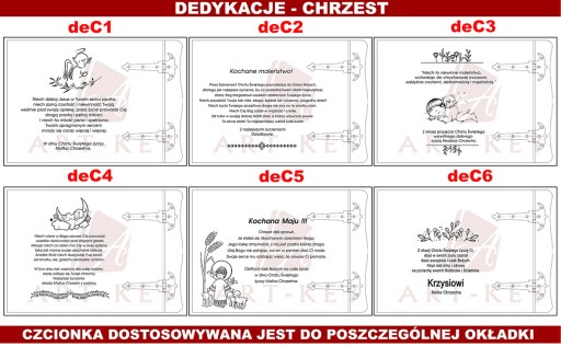 Grafika dedykacji będzie dostosowana do wybranego projektu okładki.