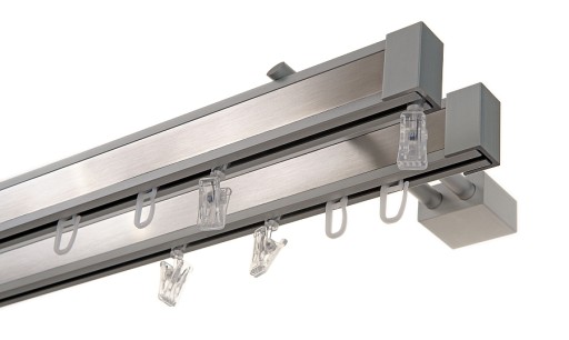 ALUMINIOWY KARNISZ APARTAMENTOWY Z PASKIEM SZCZOTKOWANEJ STALI NIERDZEWNEJ
