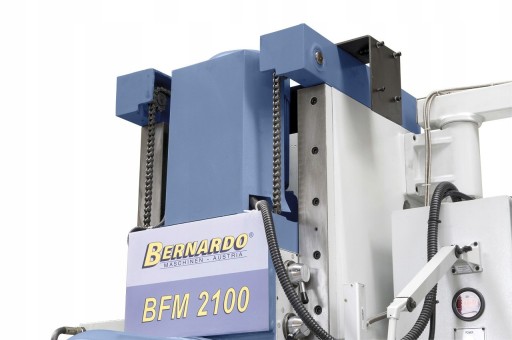 Typowa frezarka wzdłużna Bernardo BFM 2100 zachwyca masywną i ciężką konstrukcją z odlewu żeliwnego. Optymalna do obrabiania dużych elementów.