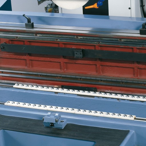 - Stół porusza się w poprzek dzięki podwójnym prowadnicom w kształcie litery v