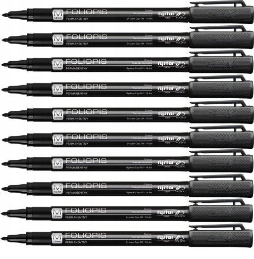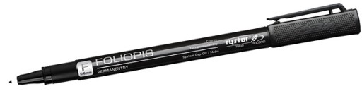 Foliopis może być pozostawiony bez zatyczki przez wiele dni (nie krócej niż produkty z systemem „drysafeink” i „cap off”) - nie zaschnie zgodnie z wymogami normy ISO 554. Korek w nasadce i obudowie określa kolor tuszu.