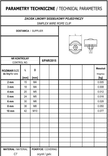 ZACISK LINOWY SIODEŁKOWY POJ. 2 mm - 10 szt. ATEST