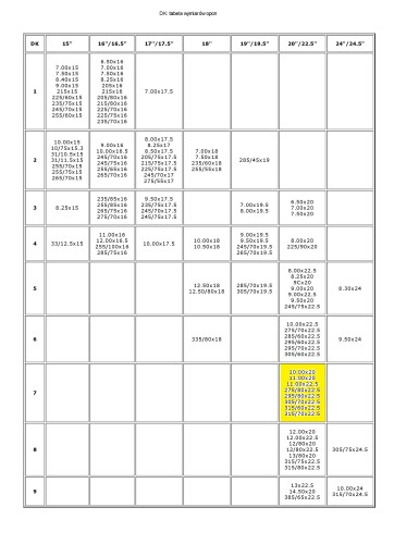 ( TABELA WYMIARÓW OPON PONIŻEJ NA ŻÓŁTYM TLE )