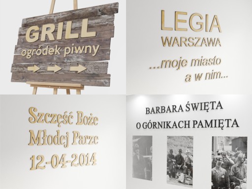 Na naszych aukcjach znajdziesz również: Inne rozmiary liter (nawet do 120cm wysokości), inne materiały (litery z lustra akrylowego, z plexi itp.), inne czcionki (czcionki ozdobne, litery łączone w wyrazy) oraz inne ciekawe wyroby wycinane laserem. Zapraszamy.