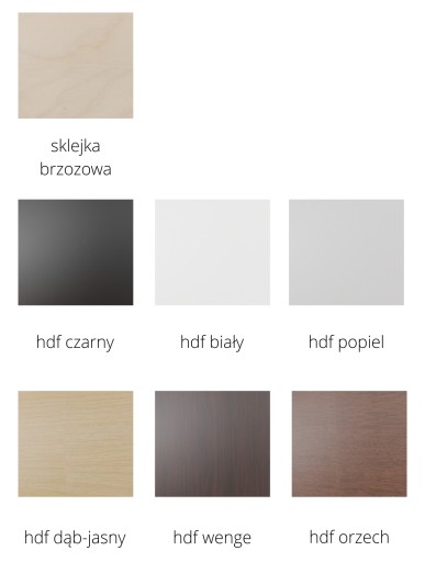 - Płyta meblowa HDF – to jednostronnie laminowana płyta drewnopodobna – występuje w kolorach takich jak czarny, biały, popiel lub orzech, wenge, dąb jasny. Płyta HDF po przecięciu laserem (bez względu na kolor laminatu) na krawędziach jest ciemnobrązowa (patrz zdjęcia).