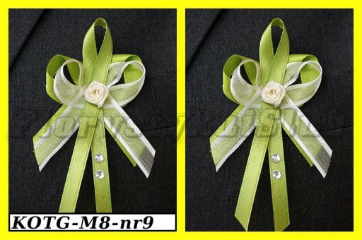 Wykonane są ze wstążek atłasowych i szyfonowych z lamówką. Każdy kotylion posiada szpilkę.