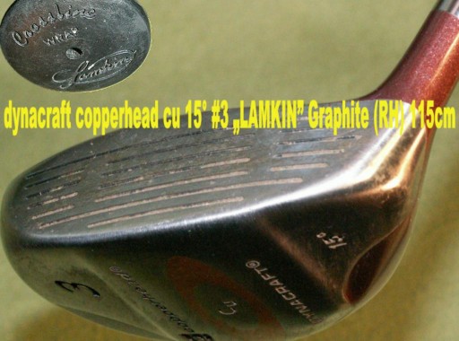 Oferuje - 1szt. używany, profesjonalny kij golfowy: dynacraft copperhead cu wedge 15°#3 „LAMKIN” shaft graphite (RH) długość ok 115cm + futeralik na końcówkę. Przedmiot wykonano z materiałów dobrej jakości. Stan przedmiotu określam jako przyzwoity(widoczne ślady użytkowania).