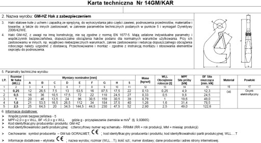 - Hak z zabezpieczeniem, ocynkowany elektrolitycznie - do podnoszenia ładunków.