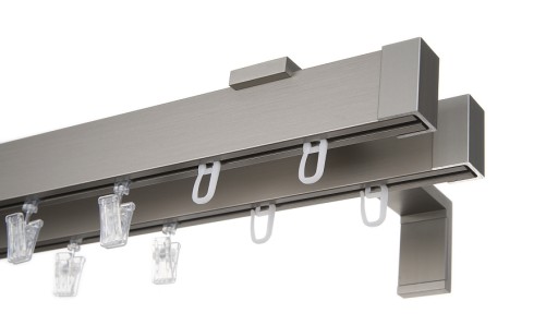 PODWÓJNE KARNISZE APARTAMENTOWE WYKONANE Z ANODOWANEGO ALUMINIUM Z PERFEKCYJNIE WYKOŃCZONĄ POWIERZCHNIĄ SZCZOTKOWANĄ W KOLORZE INOX SZCZOTKOWANY