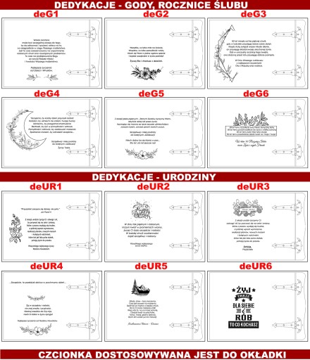 Grafika dedykacji będzie dostosowana do wybranego projektu okładki.
