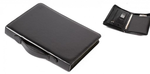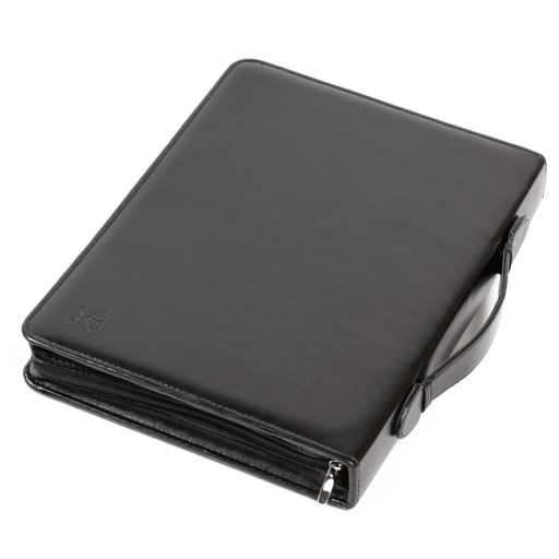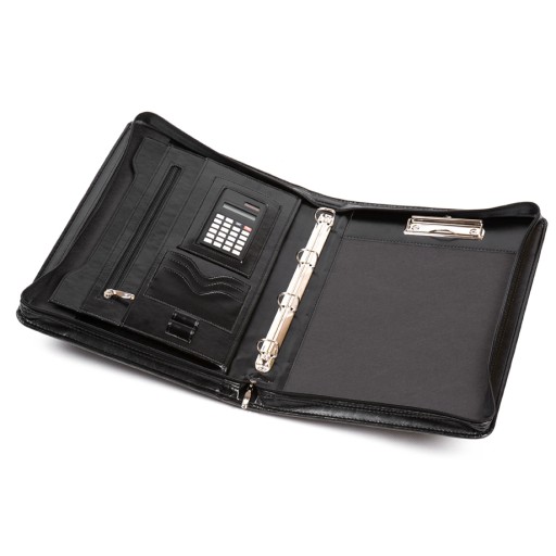 Środek (wewnętrzna część grzbietu), wyposażona została w poczwórny ring do wpinania dokumentów. Druga strona aktówki to klip.