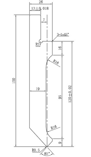 - Grubość giętej blachy MAX: 9,0 mm (stal czarna, przy V matrycy 125 mm)