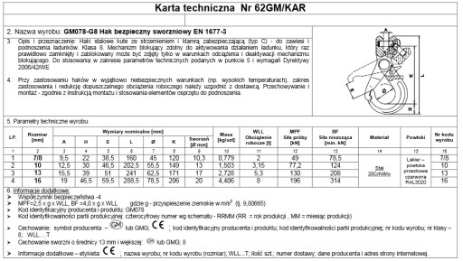 - Hak klasy "8" malowany proszkowo w kolorze czerwonym, przeznaczony do zawiesi linowych, łańcuchowych oraz włókiennych - do podnoszenia ładunków.
