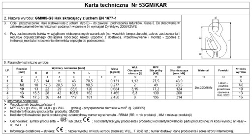HAK SKRACAJĄCY Z UCHEM 10mm KLASA 8 - 1 szt.