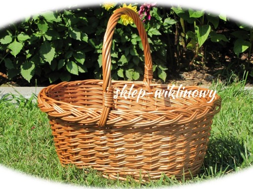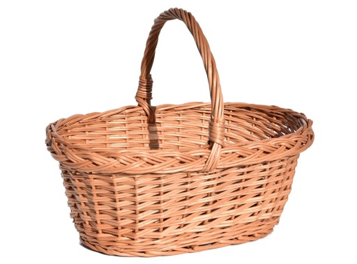 Owalny koszyczek wielkanocny z mocną rączką, często wykorzystywany również do wykonywania stroików z kwiatami lub taca na owoce. Gęsty i staranny wyplot z drobnej wikliny sprawia, że koszyczek pięknie się prezentuje i jest bardzo wytrzymały.