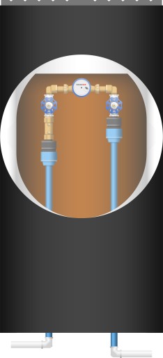 Wodomierz montowany jest ok. 30 cm od pokrywy - pozwala to na odczyt wskazań z poziomu terenu, bez konieczności wchodzenia do studni. Ocieplenie zewnętrzne wykonane zostało z poliuretanu o grubości ok. 50 mm. Dodatkowo jest okryte płaszczem ochronnym z folii polietylenowej.