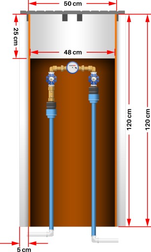 Ocieplenie poliuretanowe jest na całej długości Studni wodomierzowej.