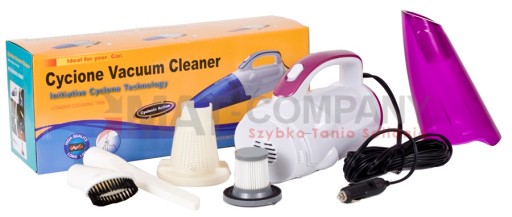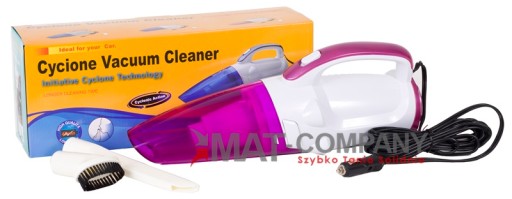 Odkurzacz ręczny do czyszczenia wnętrza samochodu, zasilany jest z gniazdka DC 12V. Wyposażono go w przezroczysty zbiornik, zapewniający operatorowi kontrolę stanu napełnienia.