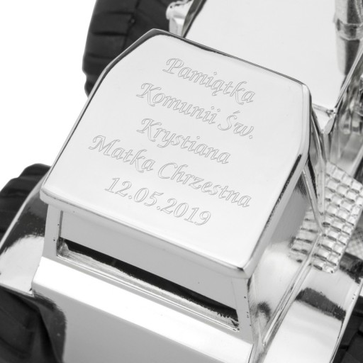 Skarbonka w kształcie traktora to znakomity pomysł na prezent z okazji Chrztu Świętego, pierwszego roczku lub kolejnych urodzin. Jak wiadomo chłopcy uwielbiają wszystko co jest związane z motoryzacją także na pewno taki prezent z pewnością sprawi radość obdarowanemu dziecku. Skarbonka posłuży na bardzo długi czas, gdyż od spodu znajduje się zatyczka do wyjmowania pieniążków.