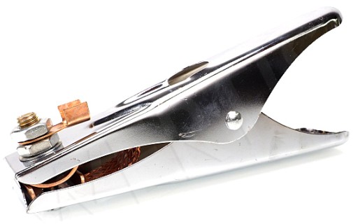 - Konstrukcja kleszczowa zacisku oraz kształt szczęk połączonych miedzianą plecionką zapewnia dobrą powierzchnię przewodniczącą styku przewodu masowego na zapinanym elemencie.