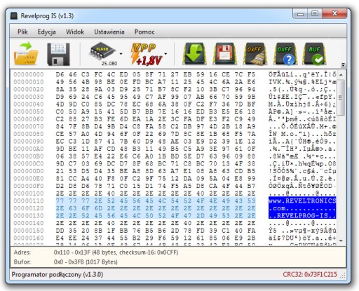- możliwość zmiany nazwy producenta, modelu, numeru seryjnego, przeliczania sum kontrolnych z poziomu oprogramowania REVELPROG-IS,