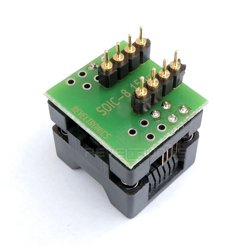 Przedmiotem aukcji jest adapter SOIC-8 (SO-8) -> DIL8 (DIP-8) ZIF 150mil. Podstawka jest kompatybilna z układami w obudowach SMD 8-nóżkowych (150 mil). Posiada wysokiej jakości cienkie, złocone piny, dzięki czemu pasuje zarówno do podstawek ZIF (zamykanych) jak i DIL/DIP. Dzięki minimalnym gabarytom, adapter będzie pasował do większości programatorów.