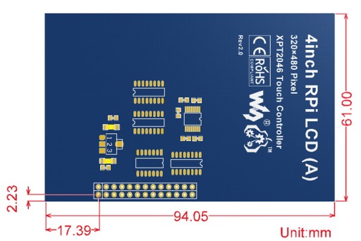 LCD 4" RPi z ekranem dotykowym, przeznaczony jest do modułów Raspberry Pi i jest alternatywą dla wyświetlaczy podłączanych poprzez złącze HDMI. Wyświetlacz pasuje do modeli RPi B oraz B+. Wyświetlacz wyprodukowany został w technologi ISP, zapewniającej znakomitą jakość obrazu, charakteryzującym się podwyższonym kontrastem oraz kątem widzenia. Sterowanie wyświetlacza jak i ekranu dotykowego odbywa się poprzez interfejs SPI, rozwiązanie to zmniejsza do minimum liczbę wykorzystanych portów GPIO w RPi