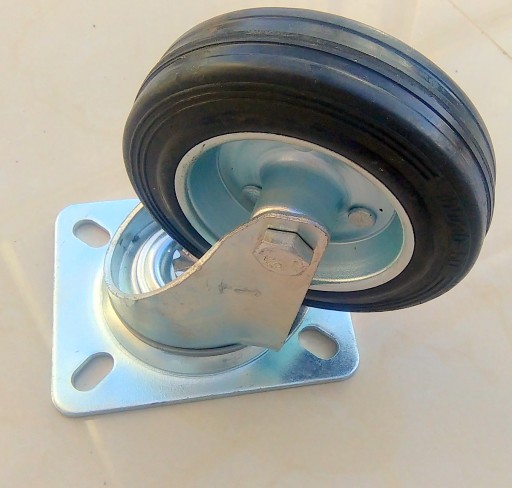 Koła skrętne mocowane na tzw. płytkę są połączeniem widelca wykonanego z tłoczonej blachy stalowej oraz koła z piastą stalową i oponką z pełnej, czarnej gumy. Głowica skrętna widelca jest podwójnie ułożyskowana oraz jest zabezpieczona przed zabrudzeniem specjalnym uszczelnieniem przeciwpyłowym. Wszystkie elementy metalowe zestawu pokryte są antykorozyjną powłoką chromowo-cynkową. Hamulec blokuje płytkę i koło.